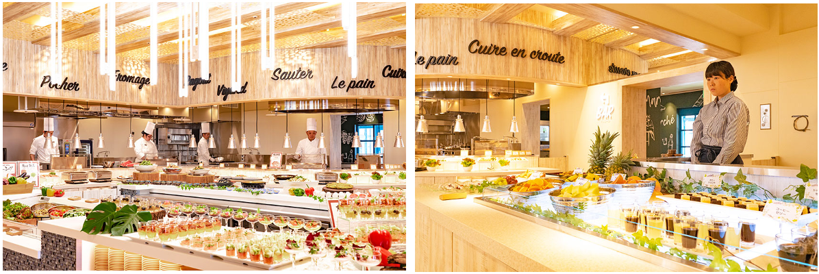 自慢のバイキングをお楽しみいただくのは、ヨーロッパのマルシェをイメージして作られたレストラン<Mercado>(市場の意)。