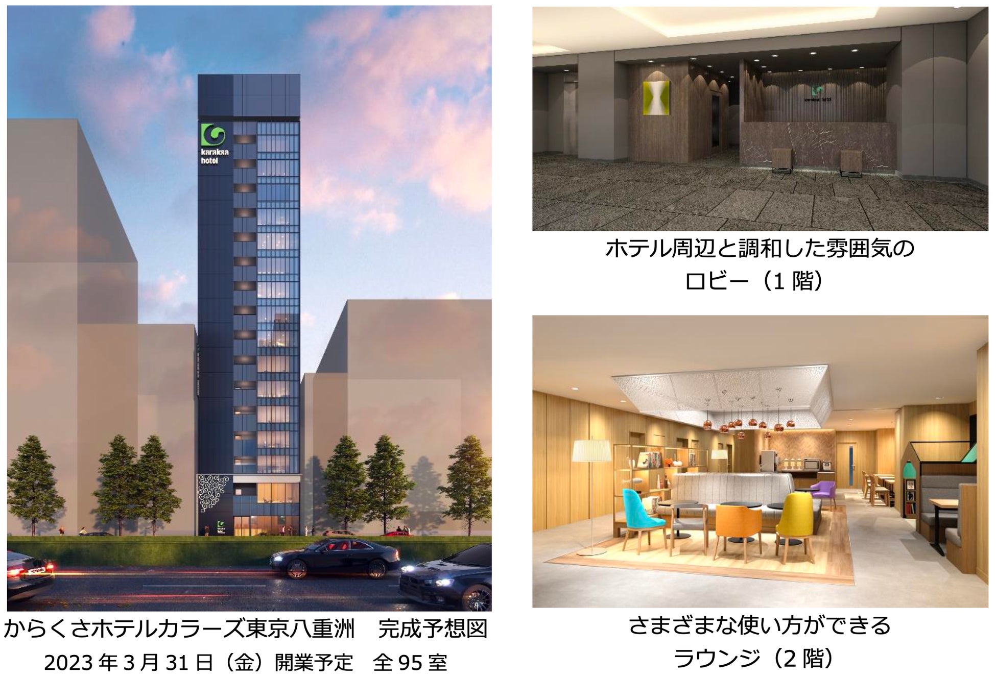 株式会社ザイマックス(本社:東京都港区、代表取締役社長:吉本健二、以下「ザイマックス」)と株式会社からくさホテルズ(東京都中央区、代表取締役社長:佐藤亮祐、以下、からくさホテルズ)は、東京で3棟目となるからくさホテルカラーズ東京八重洲(全95室)を2023年3月31日に開業いたします。開業後は北海道1棟、東京3棟、関西3棟と、全国で7棟のからくさホテルを展開することになります。