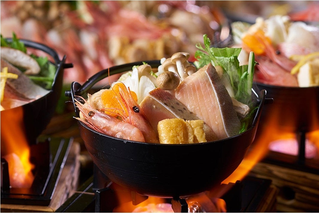 3種類の出汁と、三陸産のタラ、宮城県産の豚肩ロース、地元産の雪菜など、地元食材を活用した豊富な具材をお好きに組み合わせてお楽しみください。