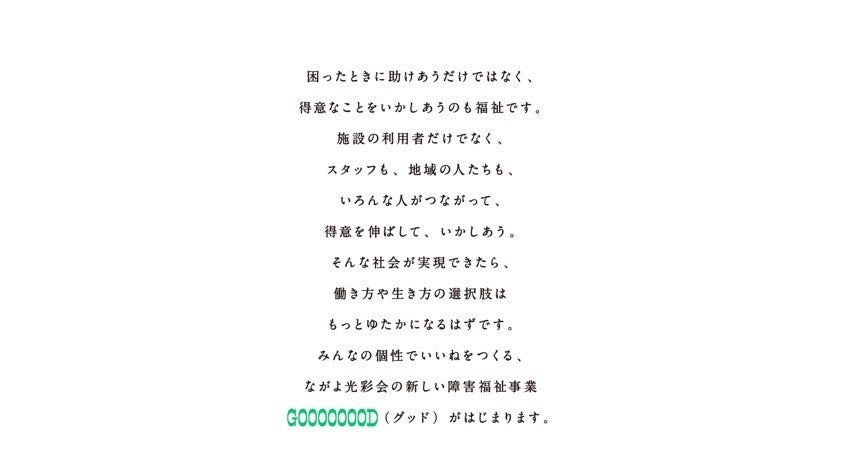 「地域のためにできること、社会のためにできること」を念頭に、長崎県長与町内を中心に、特別養護老人ホームや、長与町内の医療機関、福祉施設と協働して、子供からお年寄りまで地域住民一人ひとりの想い、生活、文化を地域でケアする、生活・文化総合事業を展開。