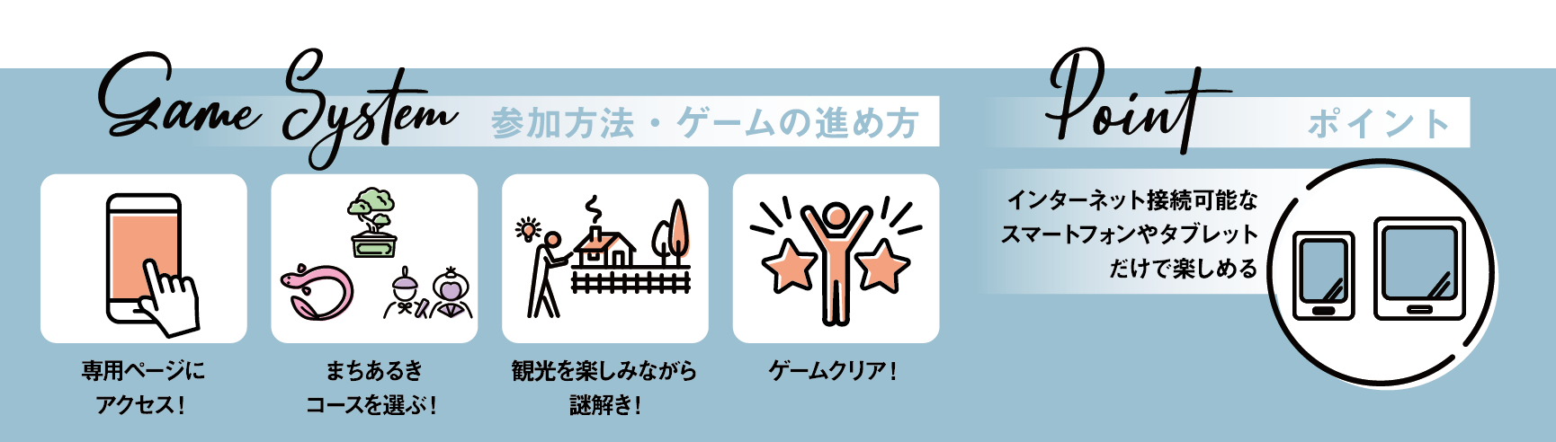 ●市内のお店や観光施設のスタッフは謎解きのヒントを持っていません。問題に関するご質問はご遠慮ください。わからない問題がありましたら、端末に表示されるヒントをご活用ください。