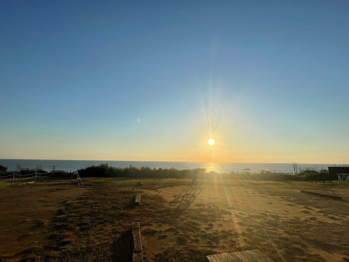 東水戸道路大洗ICから車で約20分。国道51号から横道に入り坂道を下っていくと、青い海と空が視界いっぱいに広がり、大自然のなかでゆったりとした時間をお過ごしいただけます。