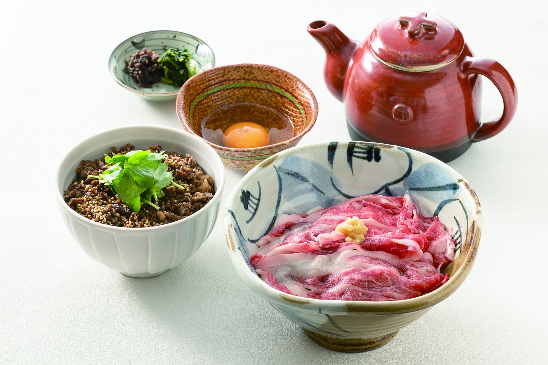 淡路牛の時雨丼は溶き卵をかけてお楽しみください。
