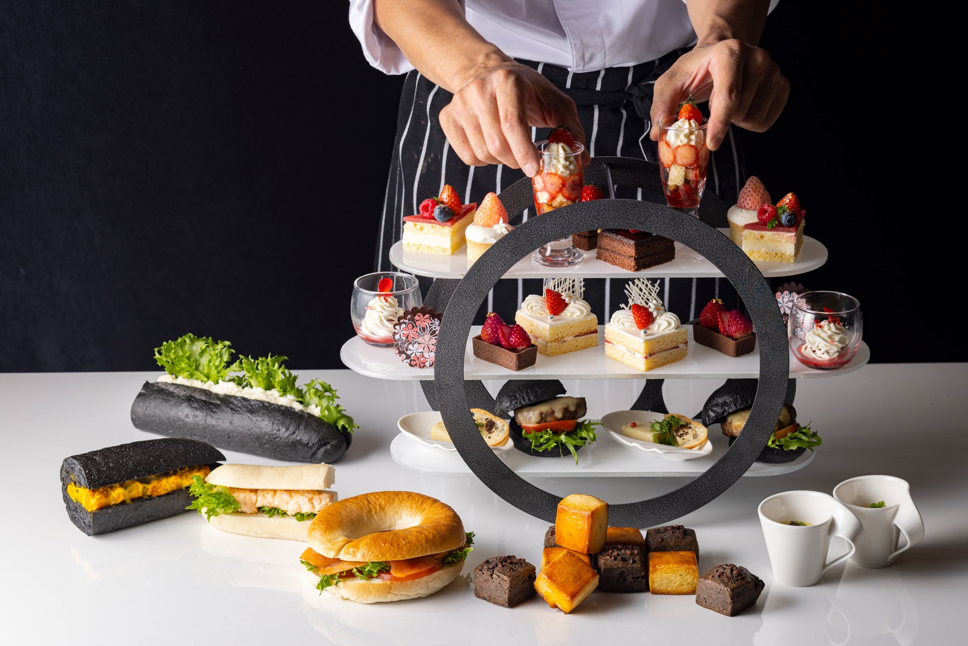 平日限定で開催するハイティーでは、いちごのスイーツに加えてマッシュポテトとひき肉を合わせたイギリスの家庭料理「シェパーズパイ」や黒胡麻のソースと合わせたポテトニョッキ、仔牛のクリーム煮のタルトなどブラック&ホワイトなセイボリーをラインアップしています。