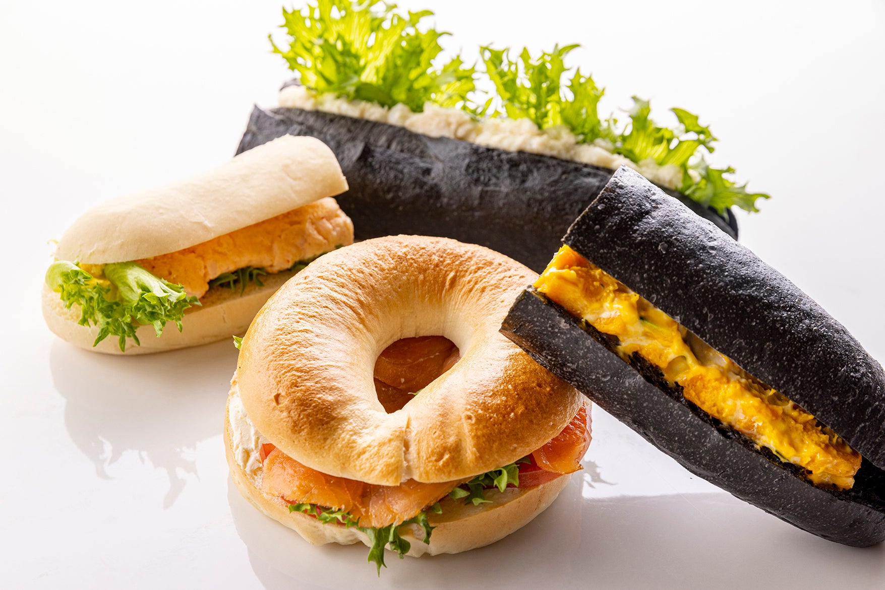 プレーンスコーン、ショコラスコーン、竹炭バゲットのサンドイッチなどをお席までお持ちいたします
