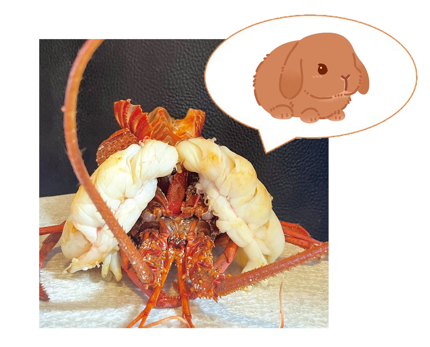 450gの伊勢海老をたれ耳うさぎのホーランドロップに見立ててご提供します。