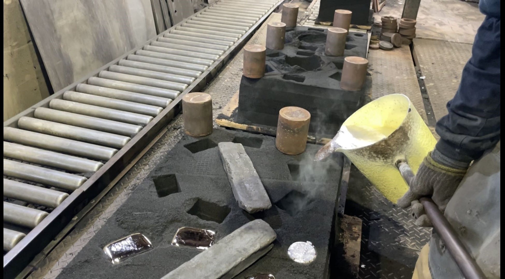 大阪摂津市の工場で一つ一つ、砂の金型に入れて鋳造します。