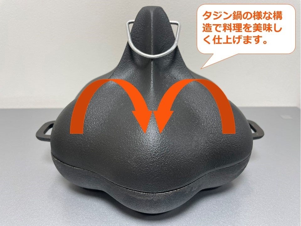 初代「にんにくん」の大きさでは、あっという間に料理を食べてしまい、人数が多いと何度も料理を作る必要がありました。そこで「にんにくん」の約1.3倍の大きさの「にんにくん2」を開発しました。また、大きくて重たいとどうしてもキャンプに持って行くには大変ですが、「にんにくん2」は、約1.15㎏と「にんにくん」の約半分の重さにする事が出来ました。
