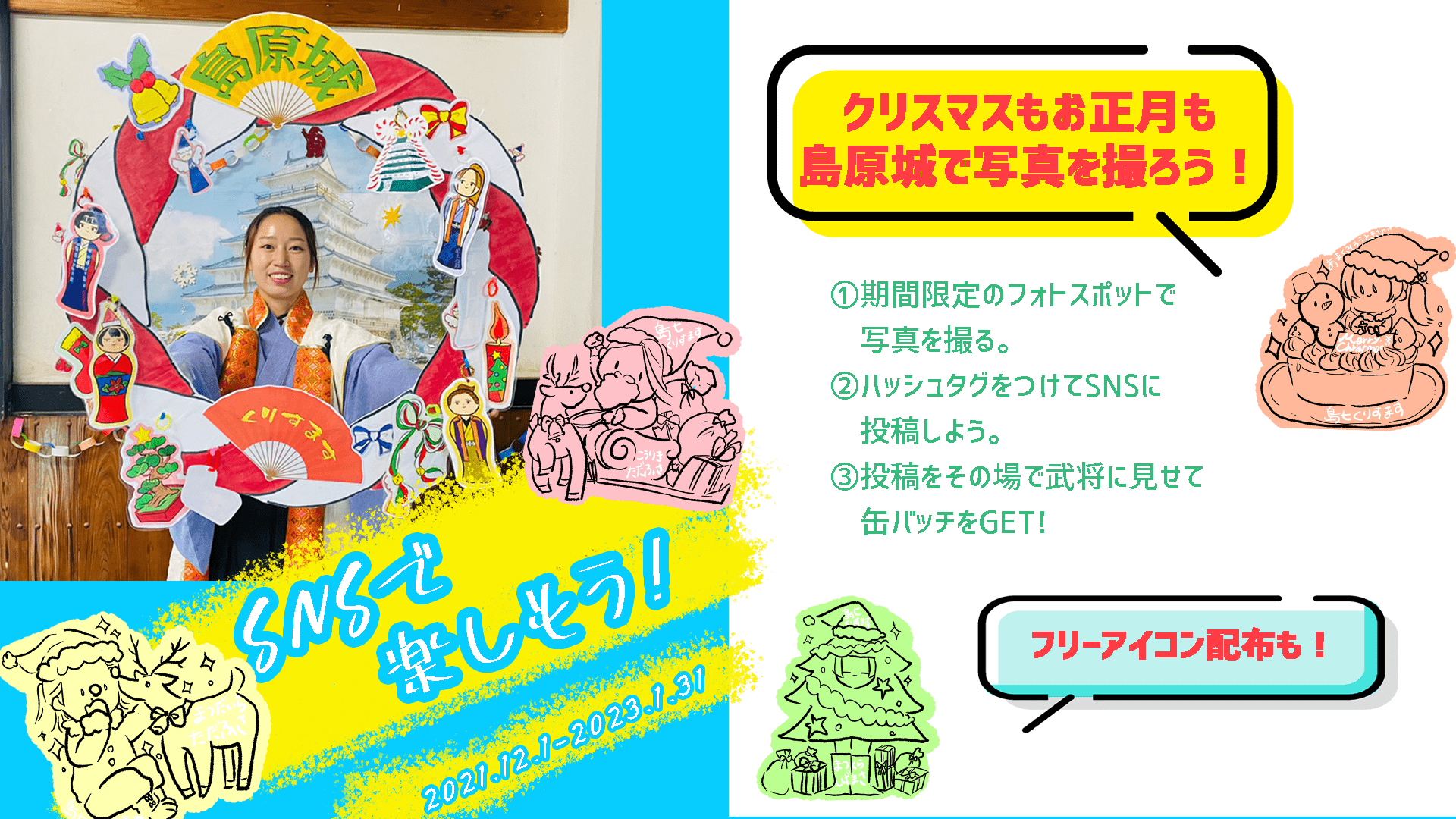 島原城七万石武将隊が「SNSで楽しもう島七くりすます」「SNSで楽しもう島七お正月」を開催しています。