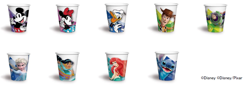 今回の特別塗装機は、「きらり色journey~ひとりひとりが持つ煌めきの色で新しい旅の物語を彩ろう~」のコンセプトのもと、機体にはミッキーマウスやミニーマウスに加え、「JALドリームエクスプレス」では初めて描かれるディズニープリンセスのエルサやピクサー作品のキャラクターたちも登場し、機内では限定版のヘッドレストカバーや紙コップをご用意します。さらに、1/200スケールモデルプレーンの国内線機内販売を皮切りにさまざまなオリジナル商品を発売します。