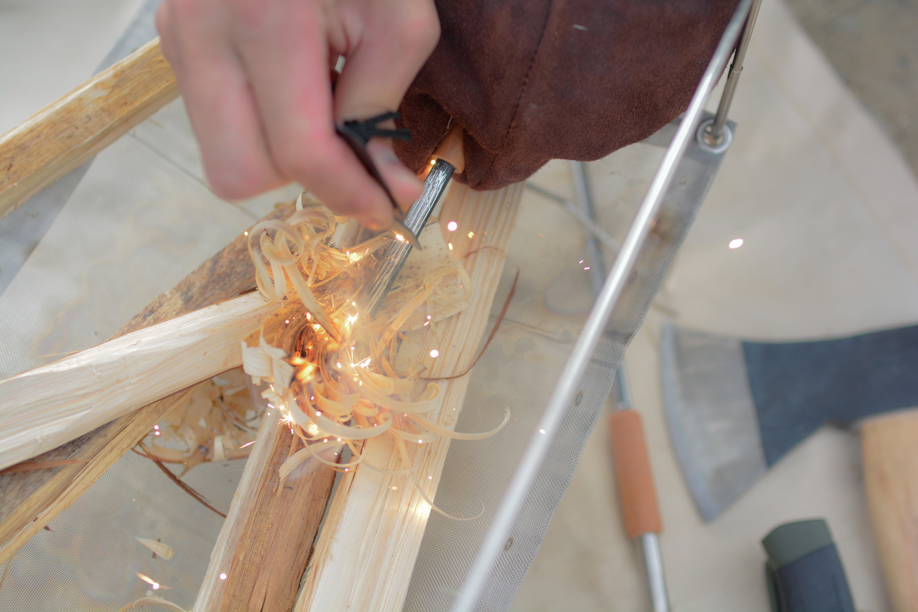 特徴:持ち手部分がウッドのファイヤースターター。ブレードは5cmまで測れるミリ単位スケールと、地図に使える5km縮尺目盛り付き。栓抜きとしても使えて利便性が抜群。