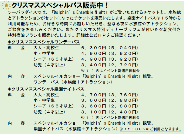 特別イルカショー付きクリスマススペシャルパス販売中!