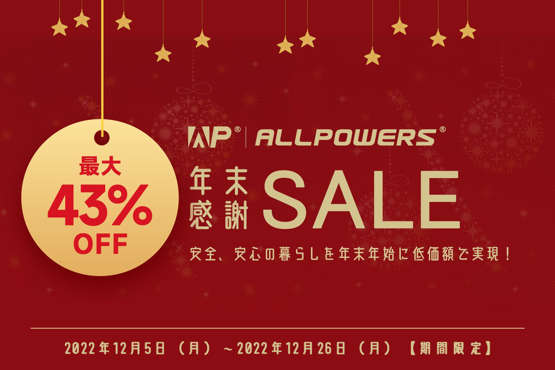 ソーラーパネルからポータブル電源までの開発・製造・販売を行っているALLPOWERS(オールパワーズ)株式会社は、2022年12月5日(月)~12月26日(月)の22日間、Amazon公式ショップにて「最大43%OFF年末感謝祭」を開催いたします。