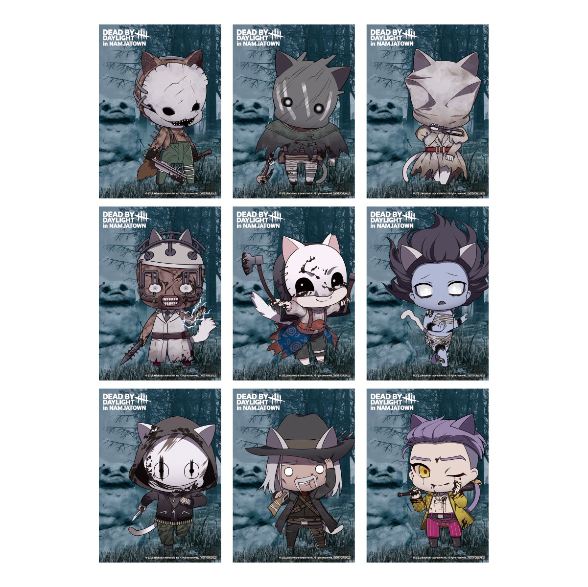 コラボ限定イラストを使用したオリジナルグッズを販売します。『Dead by Daylight』関連商品を1会計につき税込2,000円お買い上げごとに、イラストシート(全9種/ランダム配付)が1枚もらえます。