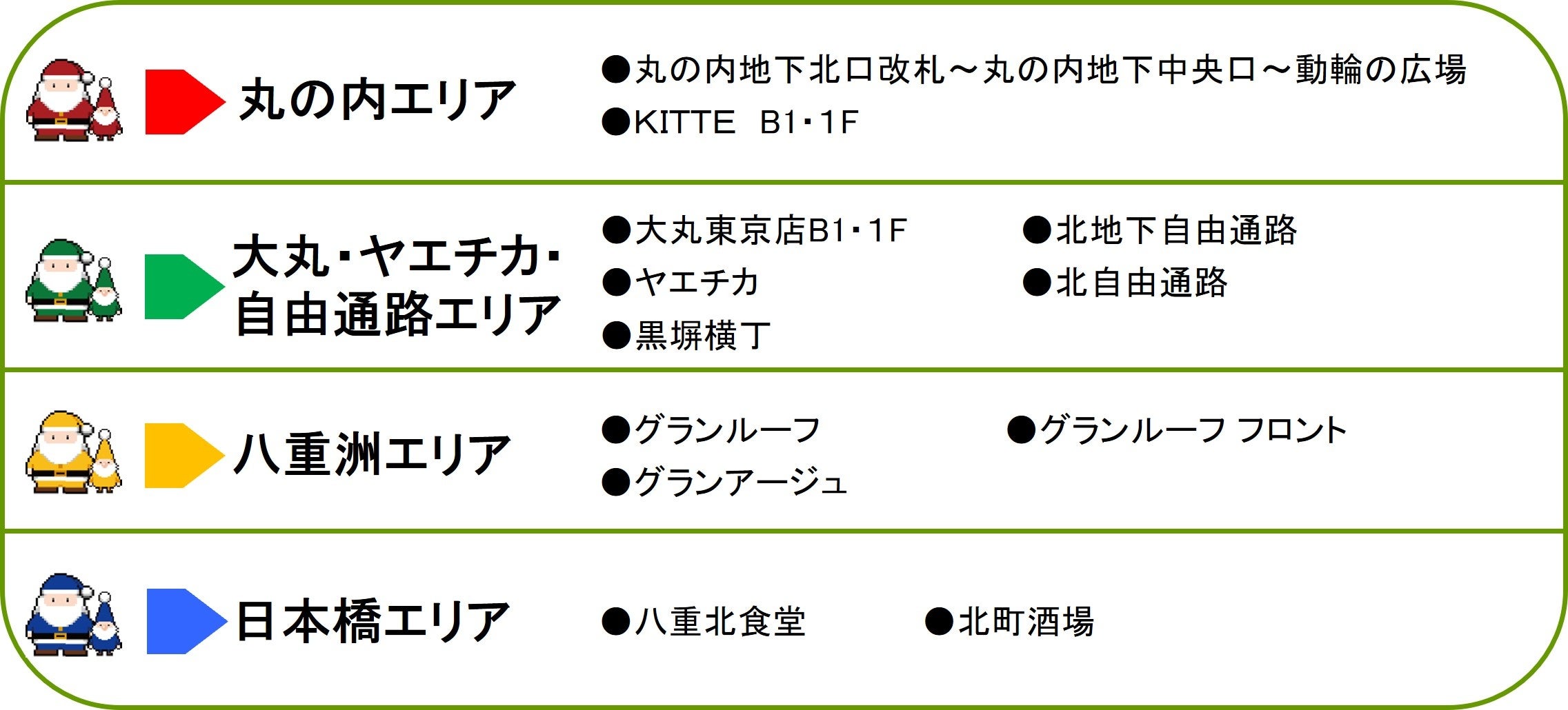 また、12月24日(土)・25日(日)限定で各エリアにサンタくんが出現!リアルに登場したサンタくんに会えると良いことがあるかも?