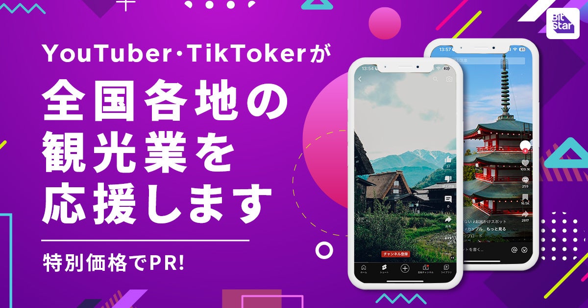 YouTubeやTikTokをはじめとするクリエイター支援事業を展開する株式会社BitStar(本社:東京都渋谷区、代表取締役 社長執行役員CEO:渡邉拓、以下BitStar)は、動画を活用して観光業を支援する「インフルエンサー全国旅行支援キャンペーン」を開始いたします。BitStar Production所属YouTuber・TikTokerが特別価格で全国各地のPRを応援します。