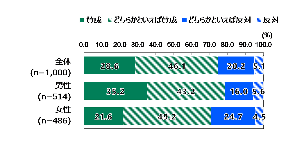 新型コロナウイルスの水際対策緩和に賛成 74.7% (※「賛成」+「どちらかといえば賛成」の計)