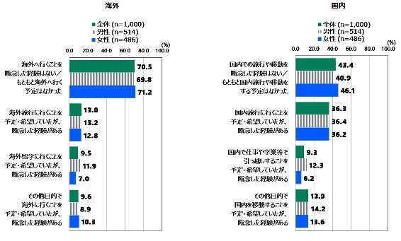 (※それぞれ、断念した経験なし・もともと予定なしとの回答者を、全体から引いた割合)