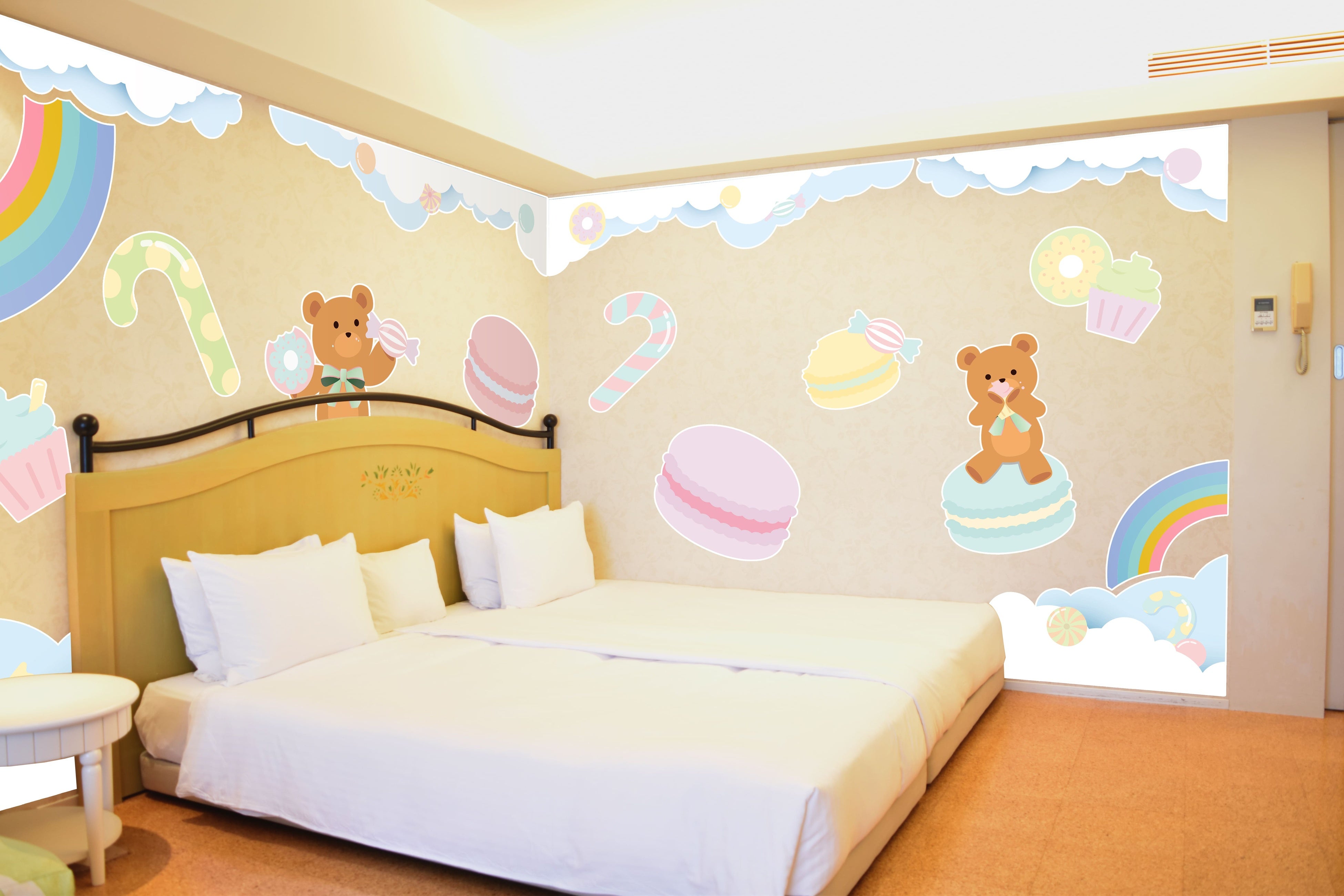 また、客室内にはかわいらしいお菓子の世界を表現した壁紙デコレーションや、「ハーフバースデー」など、マンスリーのお祝いにも最適な月齢入りのオリジナル寝相アートシートもご用意しています。「ボーネルンド」のおもちゃも設置してあるので、親子で遊んだり、はじめての親子旅行の思い出として記念撮影するなど、お部屋でゆっくり親子の時間をお楽しみいただけます。