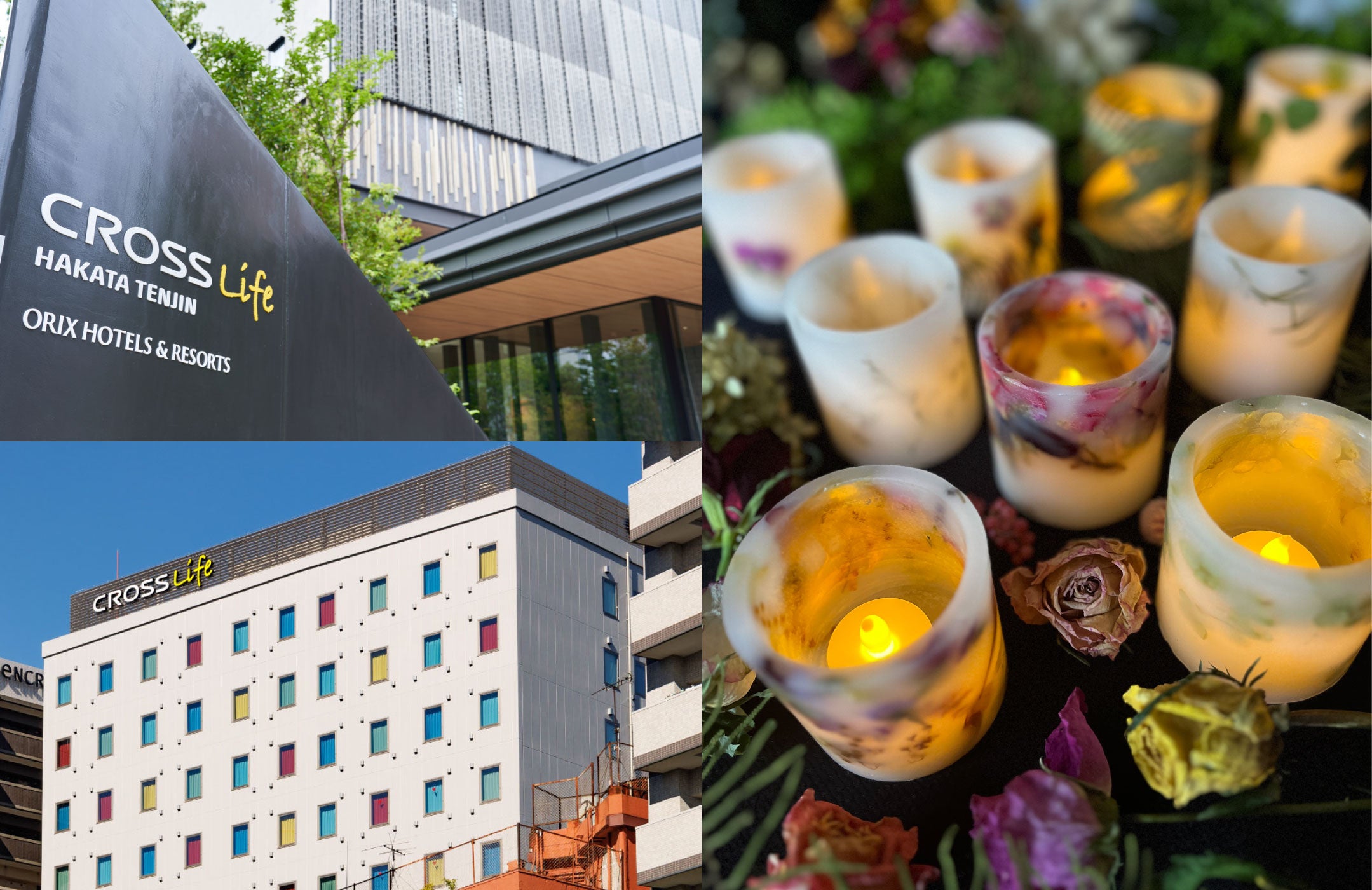 今回コラボレーションをするのは、福岡で活動し、廃棄花や廃材・端材を活用して、雑貨やアート作品へと再生させている「ippoアップサイクル」です。ippoアップサイクルの代表中西氏が教える、色鮮やかな廃棄花や端材を有効活用してらんたんキャンドル作品を生み出すワークショップは、12月17日から19日の3日間限定にてクロスライフ博多柳橋で実施します。クロスライフ博多天神では、18日から廃棄花を使用したらんたんキャンドルのクリスマスディスプレイをロビーに展示し、1週間にわたって毎日キャンドルナイトを開催します。24日と25日には、滞在ゲストを対象に特別なクリスマスバーイベントを催す予定です。