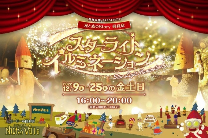 さらに、針葉樹園では森の妖精モーリーが住む絵本のような街『Nuts Ville ~ナッツビル~』で開催されるクリマスマーケットをイメージした心温まるイルミネーションが登場します。