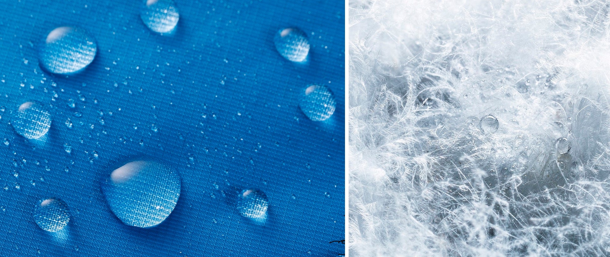 ダウンは、羽毛本来の温度調節機能が非常に高いスペイン産ホワイトダックダウンを使用。羽毛自体に超撥水加工が施されており、外気温度がマイナス5℃まで快適に過ごせる頼もしい性能を持ちます。
