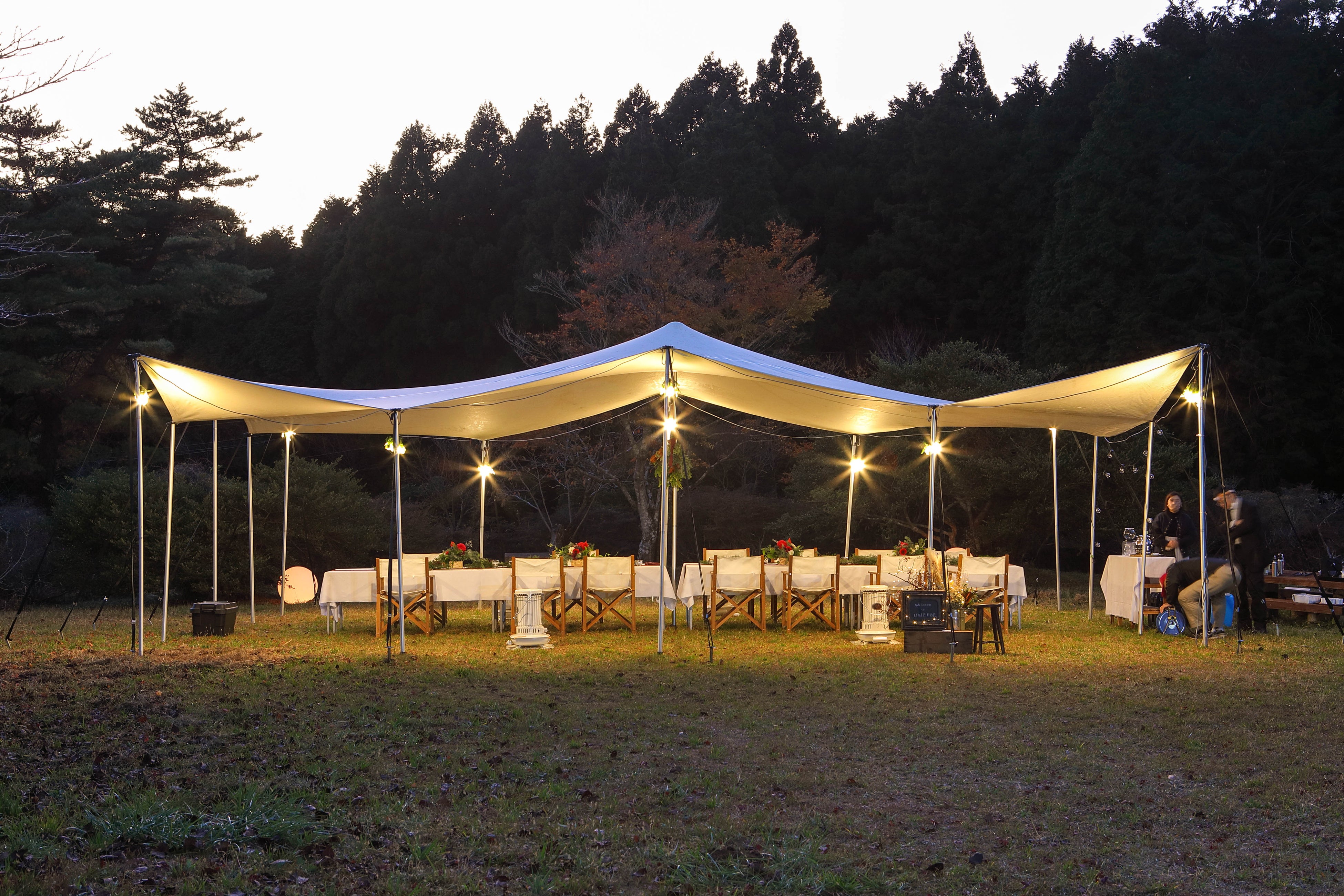 明治から昭和初期に外国人の避暑地として発展した長崎県雲仙市の雲仙温泉街。当時多くの外国人客を虜にした自然豊かな雲仙では100年以上前から優雅にグランピングを楽しみながら、フルコースを味わう姿がありました。「雲仙天幕レストラン」は当時の姿を雲仙ならではの贅沢なアウトドアアクティビティとして再現しました。