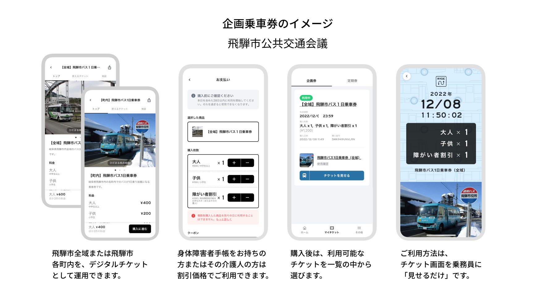 地域公共交通のDXを推進するRYDE株式会社(本社:東京都渋谷区、代表取締役 杉崎正哉、以下「RYDE」)と飛騨市公共交通会議(住所:岐阜県飛騨市)は提携を開始しました。提携に伴い、デジタル乗車券「【全域】飛騨市バス1日乗車券」、「【町内】飛騨市バス1日乗車券」のご利用を12月12日から開始します。