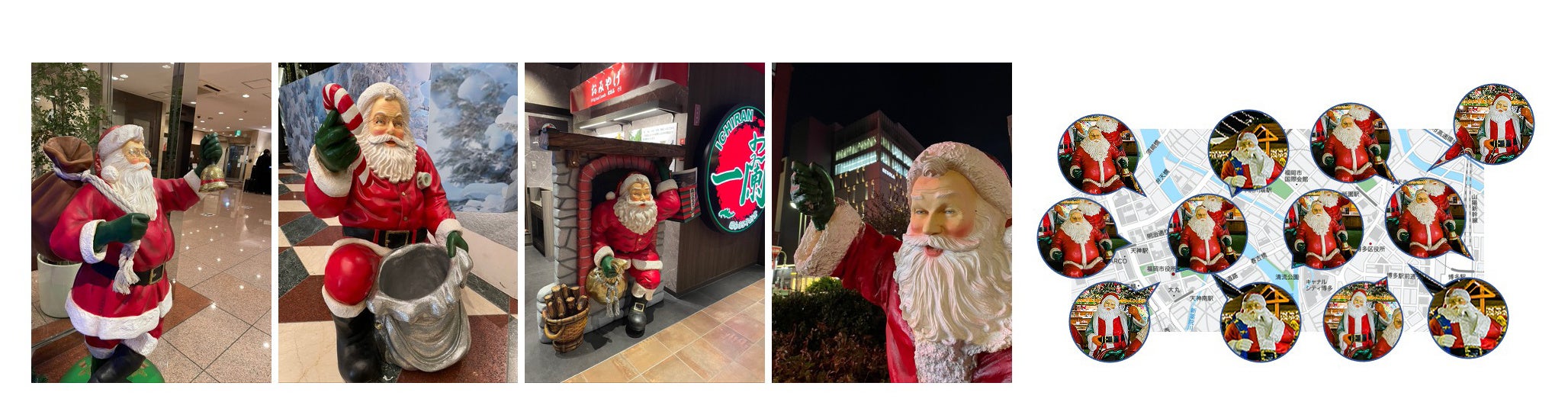 毎年天神会場を賑やかにしてくれている大量のサンタが街じゅうのあちらこちらのお店や施設に次々と出現!
