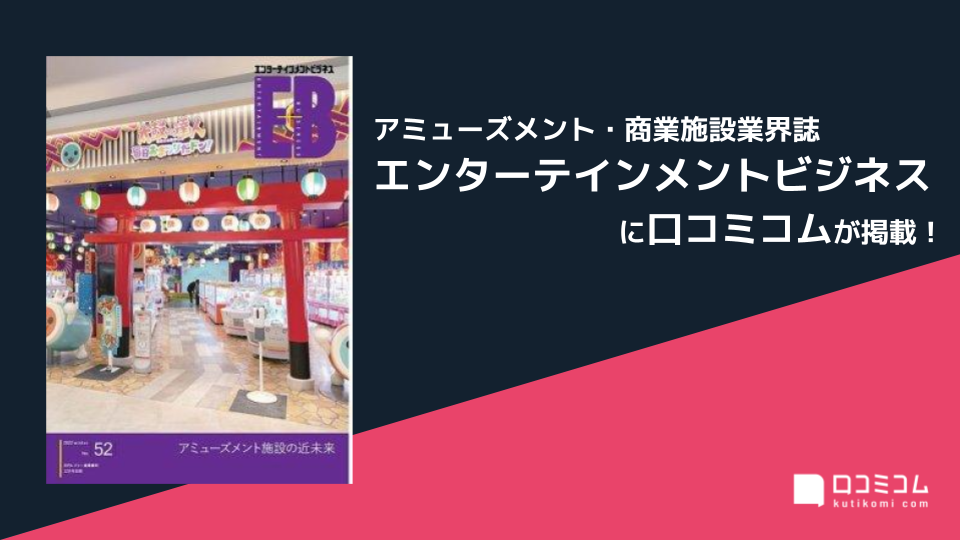 口コミサイトを”もっと”売上に変える店舗支援SaaS「口コミコム」を運営する株式会社mov(代表取締役:渡邊 誠、本社:東京都渋谷区、以下mov)は、綜合ユニコム株式会社(代表取締役:鈴木文男、本社:東京都中央区、以下綜合ユニコム)が出版するアミューズメント・商業施設業界誌『エンターテインメントビジネス』No.52(2022年12月1日 刊行)に「口コミコム」が掲載されたことをお知らせいたします。