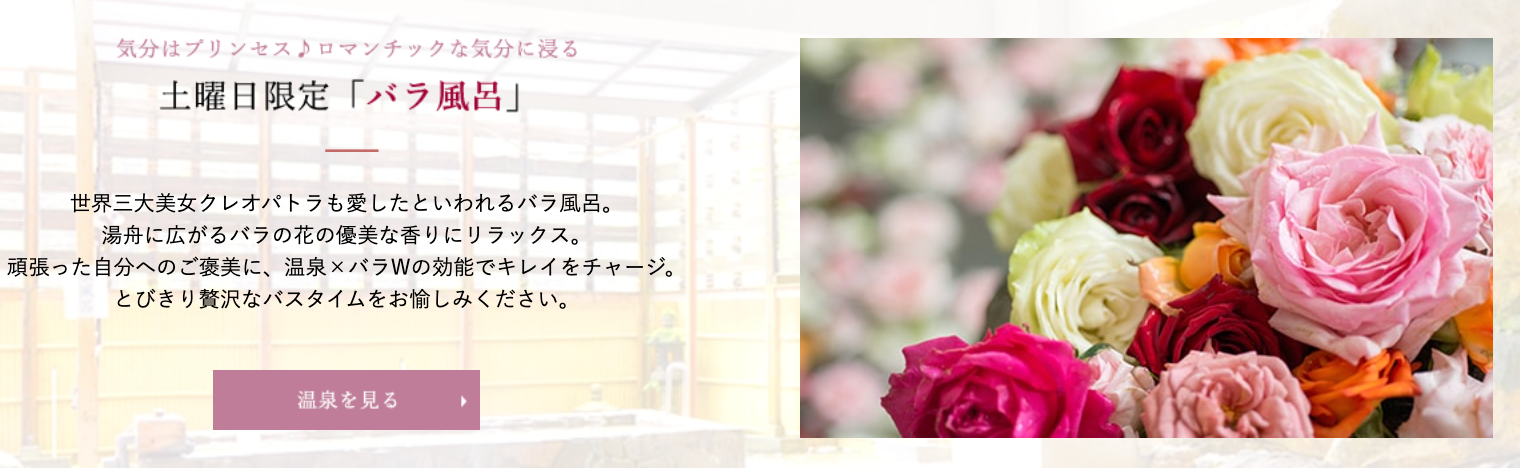 女性のお肌に寄り添ったバラ風呂を土曜日限定で実施。