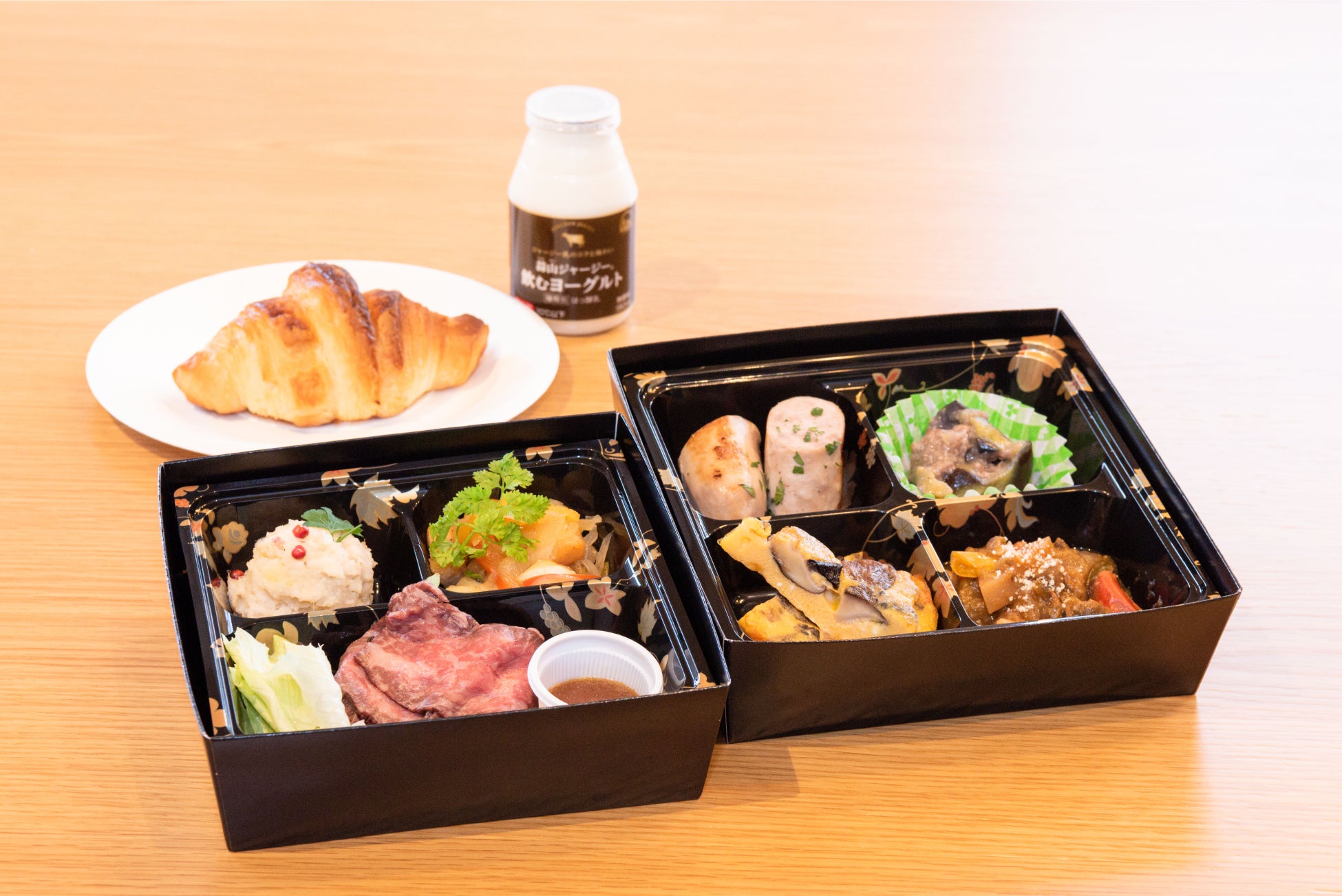 この「朝食ボックス」は、『フェアフィールド•バイ•マリオット•岡山蒜山高原』の宿泊者様限定のサービスで、毎朝お店からホテルへ納品され、朝食ボックス付きプランにてご宿泊の宿泊者へ提供されます。「SDGs未来都市」に選定された岡山県真庭市 蒜山の旅を、充実した朝食からお楽しみいただけるように、蒜山高原の魅力を一品一品に載せてご提供いたします。