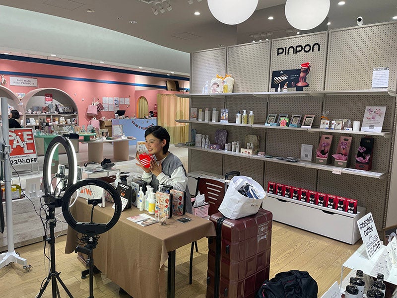 そこで、商業施設における撮影禁止ルールを逆にビジネスチャンスとして捉え、自社の商業施設内で展開しているライブコマースのためのショールーミングストア「PinPonStudio」を活用して、自社配信していない時間帯に、配信設備と配信スペースを「代理購入」の方に無償開放し、長時間、正々堂々と配信できることで、「まとめ買い」をしやすくしました。