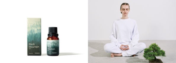 これまで和多屋別荘内にある「Yohaku Lab創香室」では、「Yohaku」 のアイコンである4種のブレンドオイル ( Sunrise / Monk Tree / Hayes Valley / Moon Jazz ) と、白檀、桂皮、ラベンダーなど天然 の香原料を調香師が開発したレシピにのっとってフレグランスバッグ 創香体験を体験いただいておりました。今回、Black Mountainの発売にあわせて、パチュリやコーヒーといった新しい香原料を用いた新レシピも登場。お好みに合わせた新感覚の香りづくりがお楽しみいただ けます。イベント期間中は、YohakuとNEUTRALWORKS.ロゴが 入った特別仕様の袋でお渡ししています。