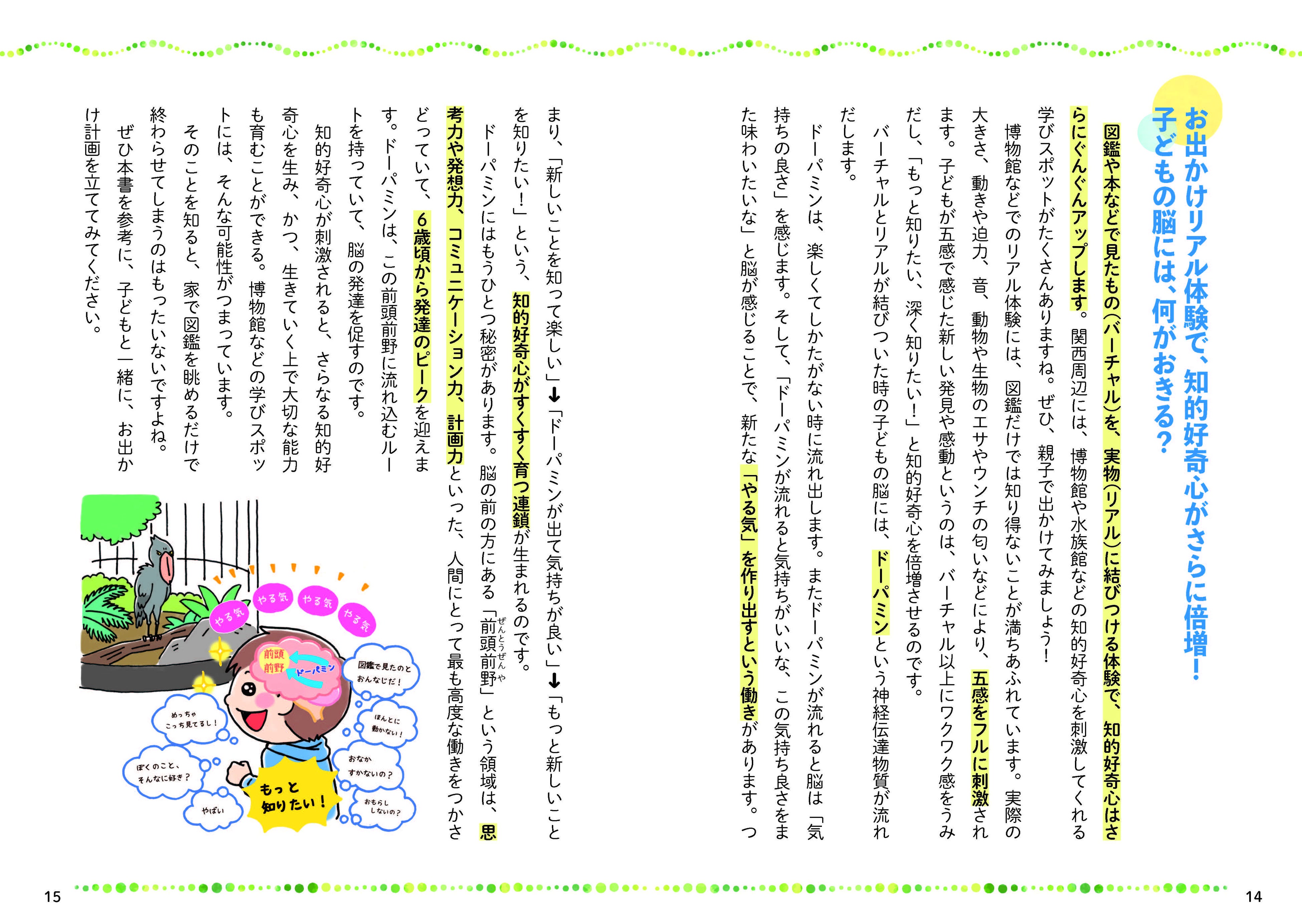 そして、おでかけ前に自宅にある図鑑や関連本を親子で一緒に読むと、より効果的です。子どもだけでなく親自身もワクワクする気持ちをもちながら一緒に楽しむことが、子どもの興味関心を広げるのになにより大切なことなのです。