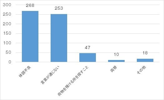 『日本への旅行の方法』に関しては、「個人旅行」が最も多く377人(63.3%)。プライベートツアーも80人(13.4%)で、団体ではなく個人で自由に行動できる旅行が好まれています(団体ツアーは139人、23.3%)。一方で、海外旅行での不安な要素については最も多かった回答が「体調不良」で268人(45.0%)。コロナ禍の影響を受ける結果となっています。次に「言葉が通じない」で253人(42.4%)となっています。