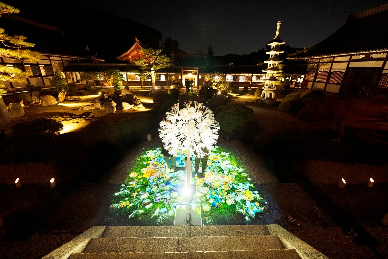 『NAKED GARDEN ONE KYOTO』は、京都圏全体を一つの「庭」に見立て、ネイキッドが京都市、宇治市、滋賀県大津市、そしてプロジェクトサポートのパートナー企業とともに、リアルとメタバースで開催する次世代アートプロジェクトです。昨年度は、宗教や宗派を越えた京都7箇所が、『DANDELION PROJECT』を通して、リレー形式で平和の願いを繋げました。今年は、2022年9月15日に京都市役所本庁舎前での『DANDELION PROJECT』の展示からスタートし、京都で最も古い神社のひとつである上賀茂神社をはじめ、二条城や平安神宮といった京都エリア各地で様々なアート展示やイベントを12月25日まで開催しています。
