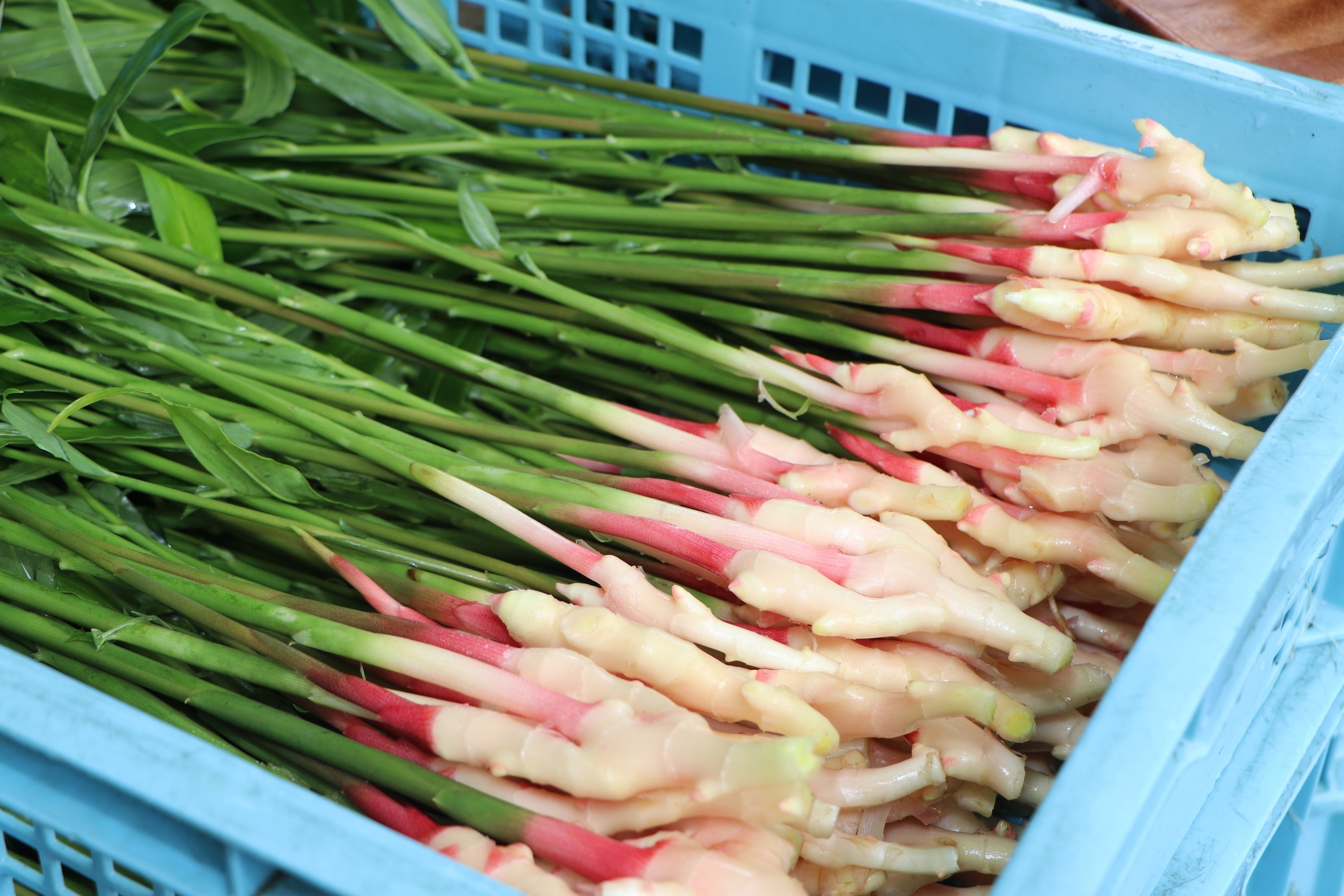 三島市塚原「ヤマツ」エリアで古くから栽培される葉生姜。大変な手間と、時間を要するため現在では生産者6人のみで種を継いでいる、希少な作物です。