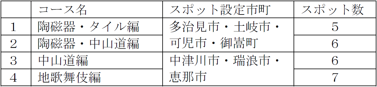 ■コースと指定スポット:東美濃エリアのみどころや酒蔵等、計24スポット