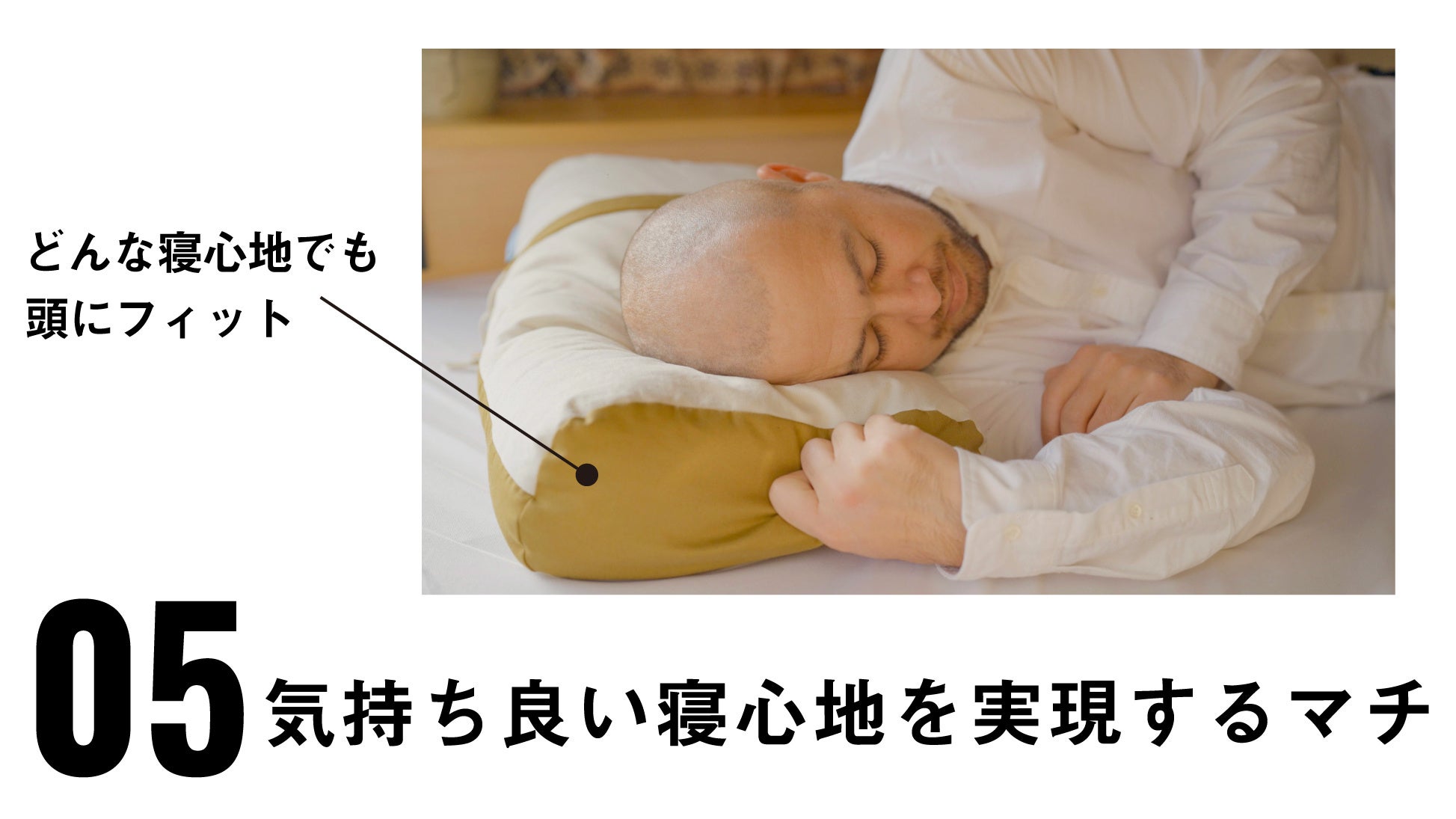 さらに、通常の枕にはあまりない両サイドのマチがあることで、寝返りした時にしっかりと頭が支えられてふわふわで気持ちの良い寝心地を実現しています。このマチは収納時にクッションとして使うときも形を整える役割をしています。