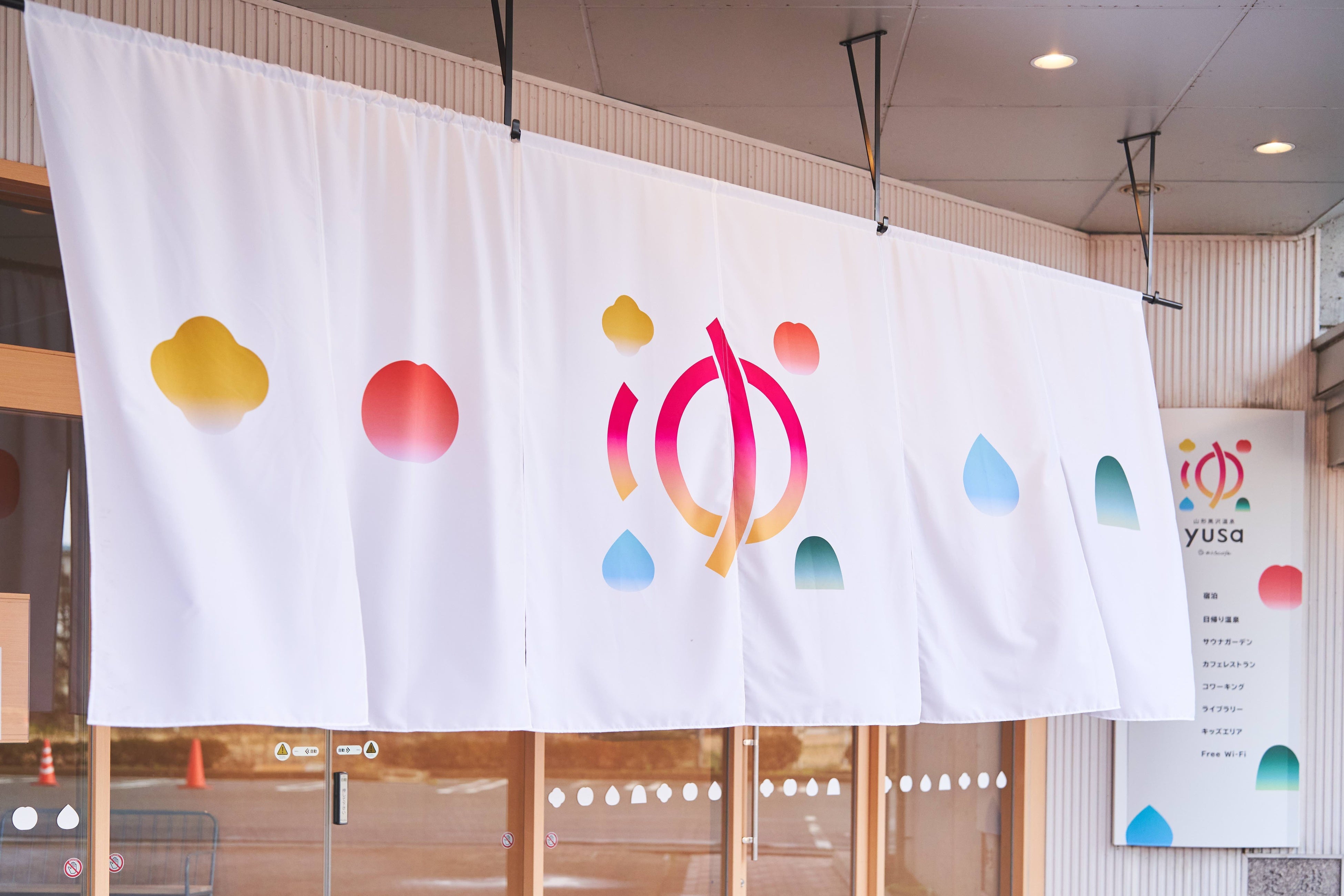 自然豊かな山々(蔵王連峰)や、今回新設される「サウナガーデン」のサウナから出る蒸気や水風呂、温泉、そして山形の名産のフルーツをロゴに詰め込みました。