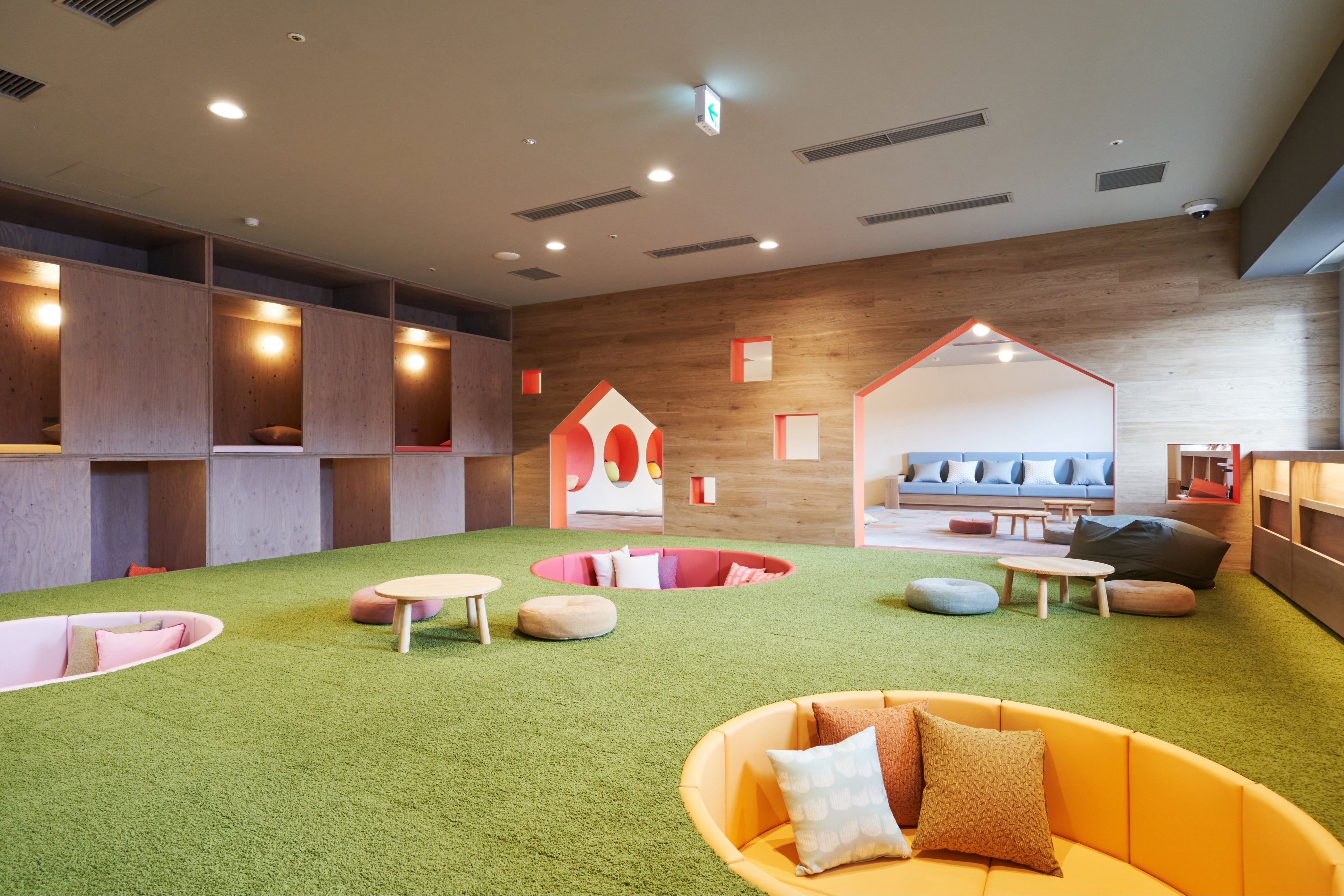フルーツをモチーフにした「フルーツソファ」や、自分だけのおこもり空間でリラックスできる「ヒトシェルフ」、ゆったり読書を楽しめる「ファイヤープレイス」等、小さなお子さまから大人の方まで楽しめる空間が誕生。家型のゲートが可愛いキッズエリアも設置し、複数世代が楽しめます。