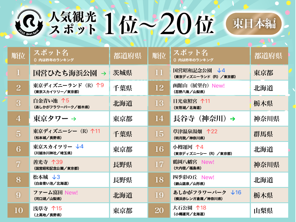 - RECOTRIP 2022年 人気観光スポットベスト30(東日本・西日本)