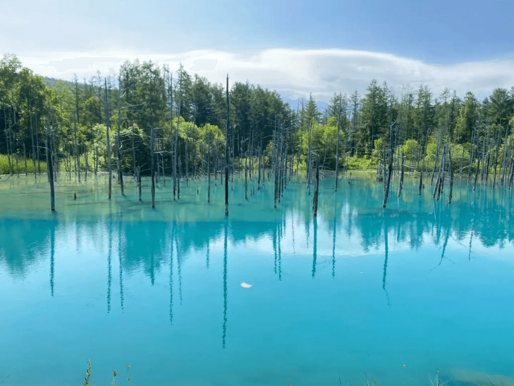 北海道の美瑛町にある「白金青い池」。もともとは、美瑛川に作られた堰堤によってできた人造池として存在していました。時が経つに連れ、自然の力により不思議な程に青く輝くようになったといいます。