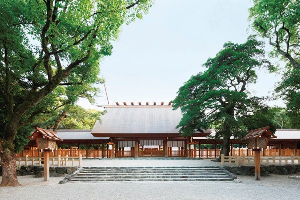 三種の神器の一つ、草薙神剣(くさなぎのみつるぎ)が祀られている熱田神宮。名古屋駅から電車で5分~7分で訪れることができます。境内は約6万坪もの広さがあり、境外のものも合わせると、本宮をはじめ45もの社があります。約6,000点の収蔵品から選ばれたものを順次一般向けにも公開している宝物館や令和3年10月に開館した刀剣専門の展示館「剣の宝庫 草薙館」もあわせて訪れてみたいものです(年末12月25日~31日は休館)。