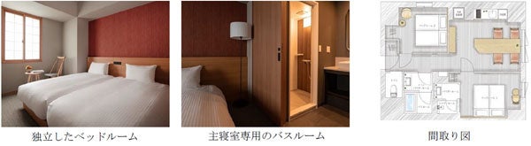 「MIMARU SUITES」シリーズは、大人グループや多世代旅行、海外ファミリーなど、区切られた個室を求めるゲストにも対応できるよう、全室が独立した2ベッドルーム以上で構成されています。客室には、リビング・ダイニングに加えて、2つのベッドルーム、2つの洗面・バスルーム、洗濯乾燥機を設けました。みんなで楽しむ時間とくつろぐ時間、それぞれを大切にしていただけます。