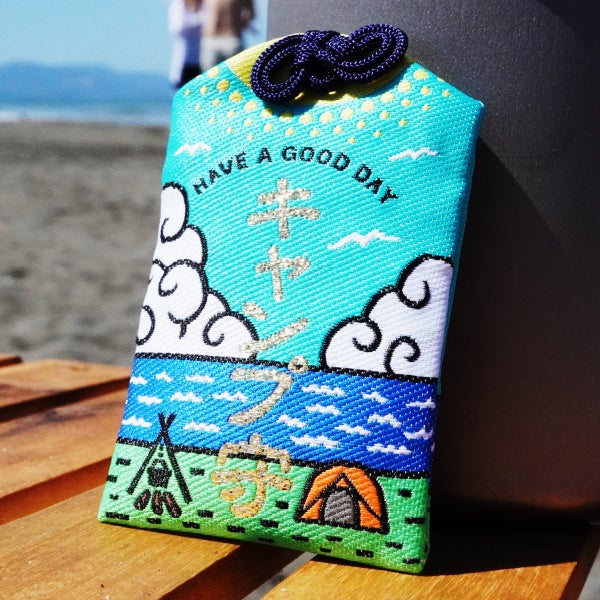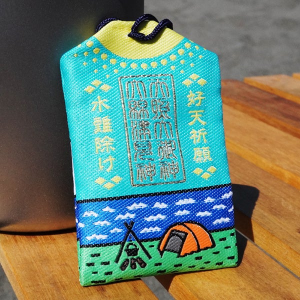 太陽を司る「天照大御神」(アマテラスオオミカミ)と海を司る「大綿津見神」(オオワタツミノカミ)を祀るお守りです。天候や水難除けなど、海のキャンプにおける平穏無事と招福を祈願しています。