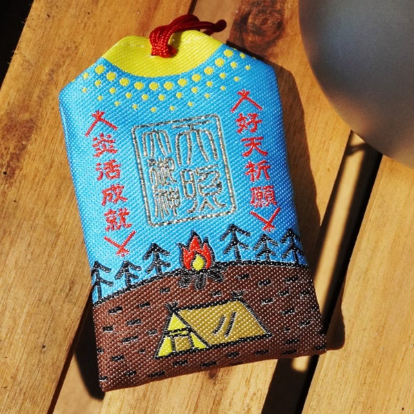 太陽を司る「天照大御神」(アマテラスオオミカミ)を祀るお守りです。天候や焚き火・BBQなど、キャンプにおける平穏無事と招福を祈願しています。