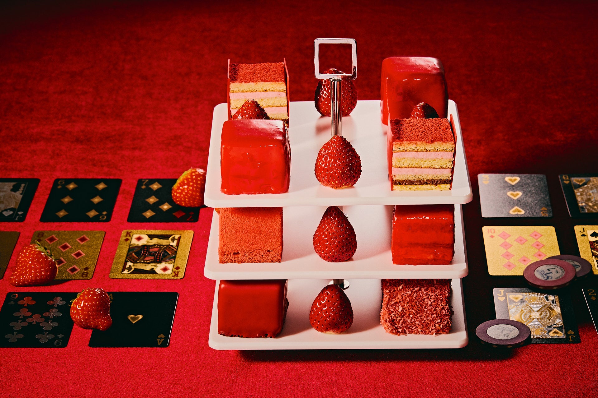サイコロを象った遊び心溢れるスコーンや、瑞々しい味わいをそのままお楽しみいただく上質なフレッシュストロベリー、またウェルカムドリンクには、ストロベリーとブルーベリーがトランプのカラーを思わせる「ストロベリーティーパンチ」もご用意。セントレジスの起源である社交界の雰囲気を感じる、気品と風格に満ちた、紳士淑女のストロベリーアフタヌーンティーをお届けいたします。