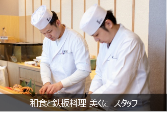 弊社は福井市内にて「和食と鉄板料理 美くに」を運営しております。当店では会席料理コース、鉄板料理コース、越前ガニコース、若狭ふぐコースなどがあり、お客様の大切な日のお食事と場を提供してきました。和食と洋食の職人が在籍しており、本格的な料理を楽しむことができます。季節に応じて扱う食材も異なるため、旬で新鮮な料理を食べることが出来ます。お酒にもこだわっており、お料理のお供として限定酒を常時30種以上をそろえております。